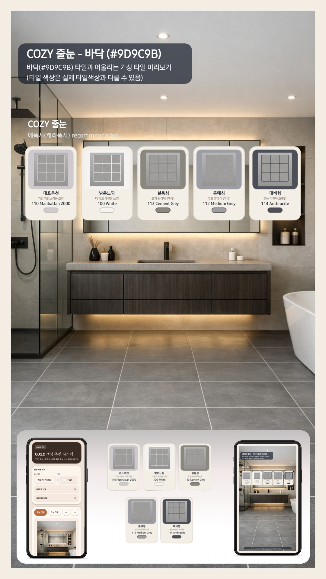 "색상 추천 받고 했는데 너무 만족해요! 우리 집 타일이랑 너무 잘 어울려요"